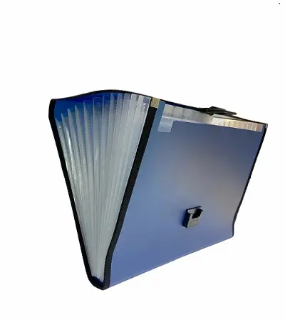 La carpeta acordeón de oficio es un archivador de tamaño oficio que viene con divisiones internas en forma de acordeón, lo que permite ordenar y seleccionar documentos de manera fácil y práctica. Este tipo de carpeta suele contar con varios separadores numerados o etiquetados para facilitar el orden de documentos. Comúnmente se utilizan en oficinas, escuelas y hogares para mantener los documentos ordenados y protegidos.